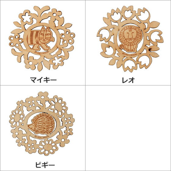 下の小さな画像にカーソルを合わせると上の大きな画像が切り替わります(クリックはしないでください) マイキー レオ ビギー リサ・ラーソンの人気キャラクターがお花と一緒に切り抜かれた木製コースター♪